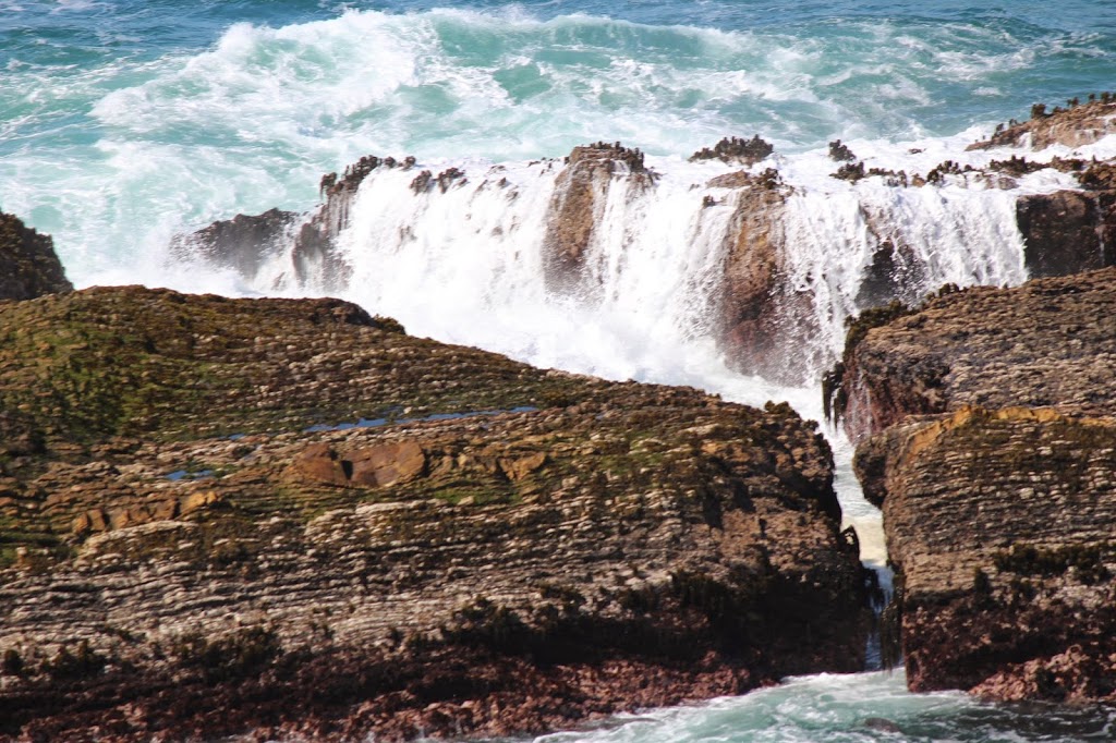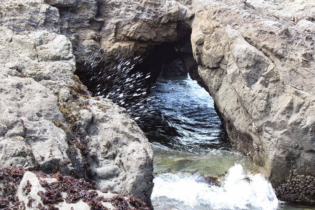 | One of the many caves and tunnels water winds its way through in Glass Beach. |